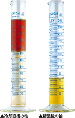 水分は容器の底に沈降するが、夾雑物はすぐに再分散するので濾過が必要。